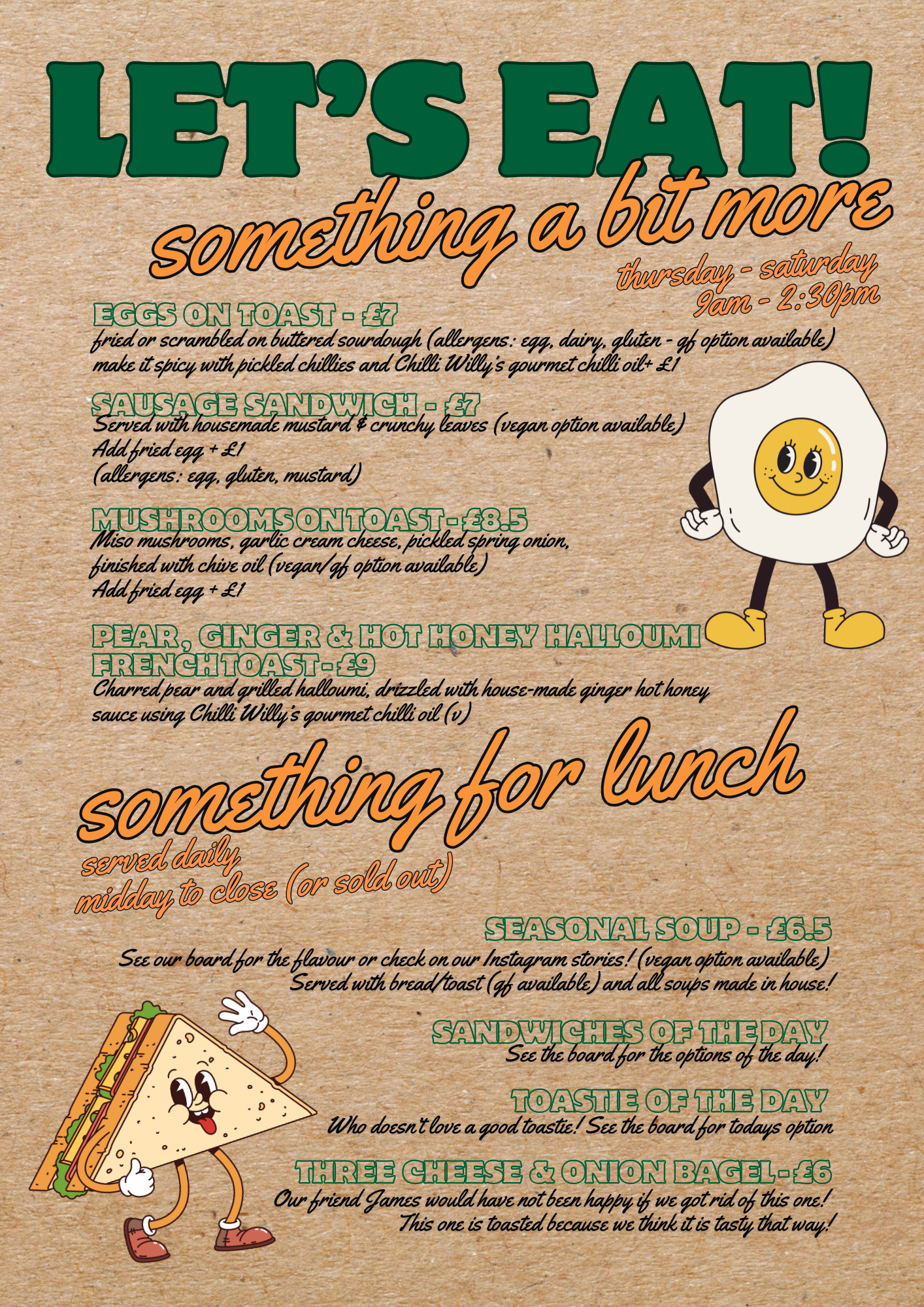 Our kitchen is open Thursday to Saturday but the counter is open everyday so there is always some form of food available in the shop!
